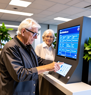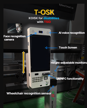 T-OSK is a kiosk designed for vulnerable groups, such as the elderly, individuals with disabilities, and children, who may find it challenging to remember and input IDs and passwords. T-OSK uses TSID (Time Sync Identification) technology, allowing users to authenticate with their smartphones
