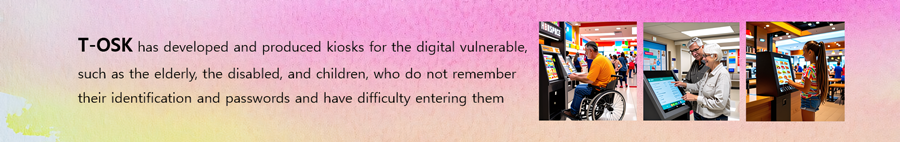 T-OSK is a kiosk designed for vulnerable groups, such as the elderly, individuals with disabilities, and children, who may find it challenging to remember and input IDs and passwords. T-OSK uses TSID (Time Sync Identification) technology, allowing users to authenticate with their smartphones